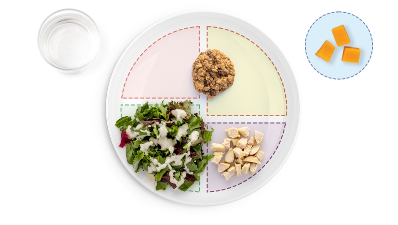 Here are some examples of what meal and snack portion sizes might look like on my plate.